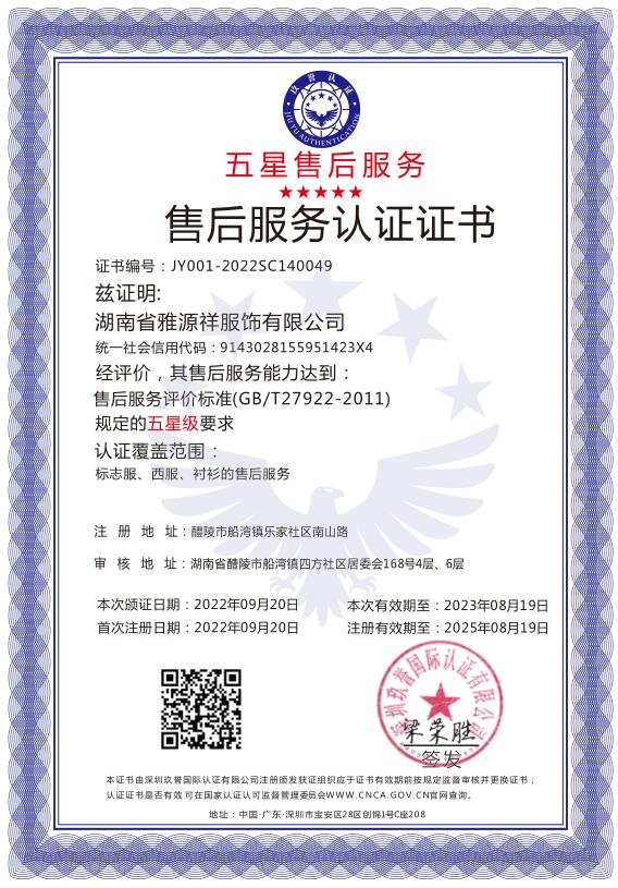 售后服務(wù)認證證書