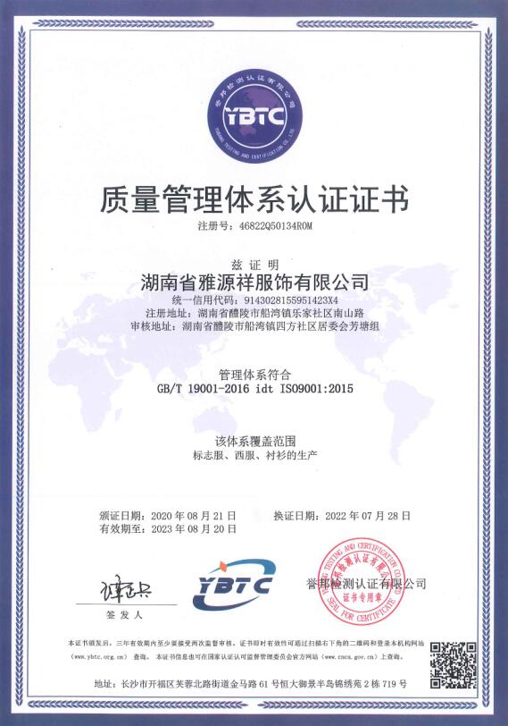 1、企業(yè)概況 湖南省雅源祥服飾有限公司地處湘贛邊境素有瓷城之稱的醴陵郊區(qū),企業(yè)創(chuàng)建于1995年,是行政執(zhí)法制服、被裝的生產(chǎn)企業(yè)。2、組織機構(gòu) 跟隨改革開放的步伐,我公司不斷發(fā)展壯大,公司董事會下設(shè)總經(jīng)理辦公室、生產(chǎn)部、技術(shù)部、質(zhì)檢部、財務(wù)部、采購部、業(yè)務(wù)部等部門,下設(shè)有流水線西服生產(chǎn)車間、標志服生產(chǎn)車間、襯衣生產(chǎn)車間、... [更多]